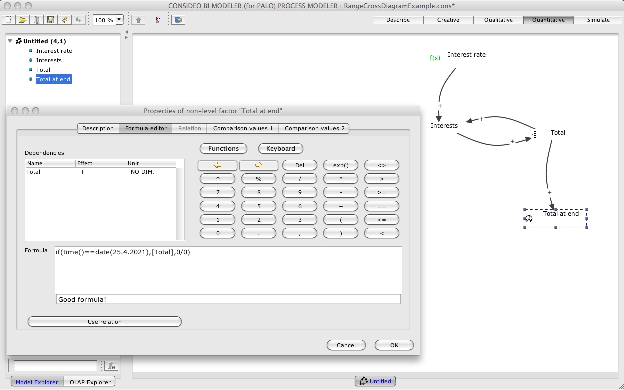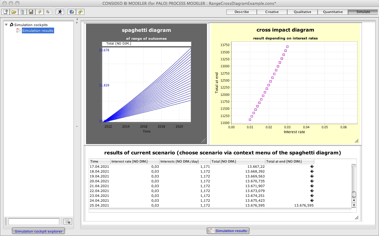 Usually by use of the range() formula you are looking at the end result of a scenario and with the cockpit element of the cross impact diagram you just want to see what scenario lead to what end result. Unfortunately all the other intermediate results of the other time steps are also shown within the cross impact diagram. To prevent this from happening you may use a small trick I present with this example.