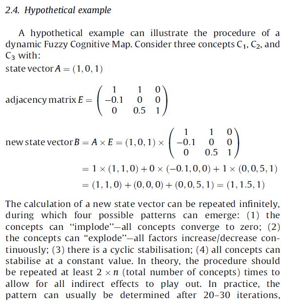 What I found interesting is that FCM alway show asymptotic behavior as they calculate loops but without stocks. Within a system dynamics simulation you can define stocks where appropriate and as a result the behavior could be escalating.